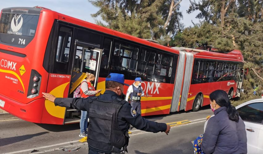 De acuerdo con un comunicado del sistema Metrobús, una motocicleta se le atravesó a la unidad, por lo que el conductor realizó una maniobra para evitar la colisión y se impactó contra un árbol. Las autoridades indicaron que el incidente ocurrió minutos después de las 8 de la mañana.