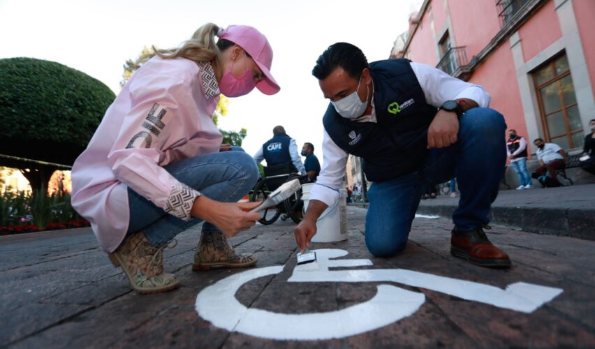 Y en esta ocasión, para llamar a la consciencia de todas y todos sobre la movilidad de las personas con discapacidad, el Presidente Municipal y su esposa pintaron en el Centro Histórico un par de los espacios de estacionamiento que se dispone como una de las muchas acciones que implementa el Municipio para darles el espacio que les corresponde y apoyarles para hacerse visibles.