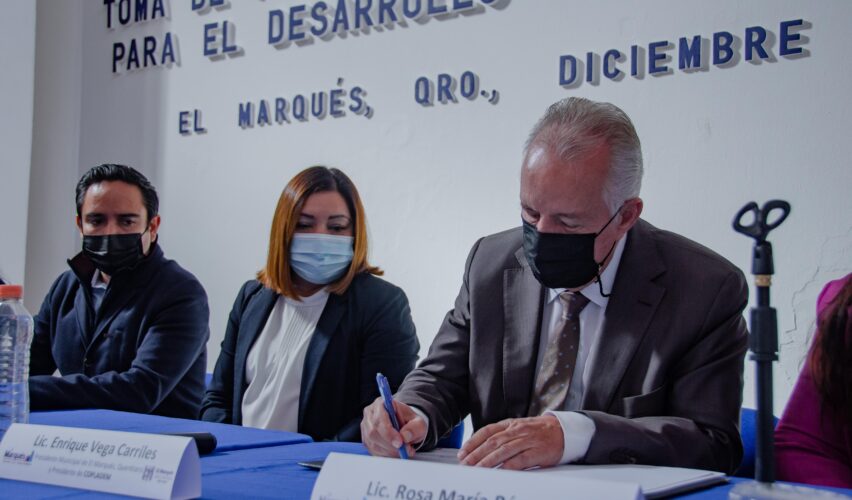 Como integrantes del Comité de Planeación para el Desarrollo (Copladem) del municipio de El Marqués, rindieron protesta el alcalde Enrique Vega Carriles, como presidente del Comité; Rosa María Pérez Cervantes, como Coordinadora General del Comité; Maricela Martínez Sánchez, como Secretaria del Comité; la Síndica Claudia Martínez Guevara como representante del cuerpo colegiado de regidores; y Esmeralda Valencia León, como representante de los Consejos Municipales de Participación Ciudadana.