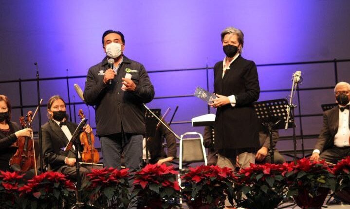 Querétaro, Qro., 22 de diciembre de 2021.- En el marco de las actividades del programa Juntos Adelante por la Navidad que Queremos, el Presidente Municipal de Querétaro, Luis Nava, y su esposa y Presidenta del Patronato del Sistema Municipal DIF, Arahí Domínguez, disfrutaron junto con decenas de familias la presentación de “El Mesías” de Friedrich Händel, en un concierto organizado en el Teatro de la Ciudad por la Secretaría de Cultura.