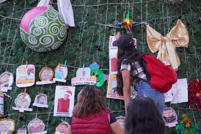 Oaxaca, Oax., 28 de diciembre de 2021.- La semana pasada, un grupo de activistas quitaron las vallas que protegían el árbol de Navidad del Zócalo del Oaxaca y colocaron esferas con los rostros de deudores alimentarios. “Conozcan sus rostros, conozcan cómo se llaman; estos hombres por voluntad propia han decidido abandonar a las infancias, no sólo en lo económico sino también en lo afectivo”, expresó Diana Luz Vázquez, activista y feminista oaxaqueña.