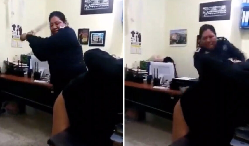 Perote, Veracruz, 5 de enero de 2022.- Se viralizó un video en el que se ve cómo una policía golpea a un detenido con una tabla. Los hechos ocurrieron en las instalaciones de la comandancia municipal de Perote, Veracruz.