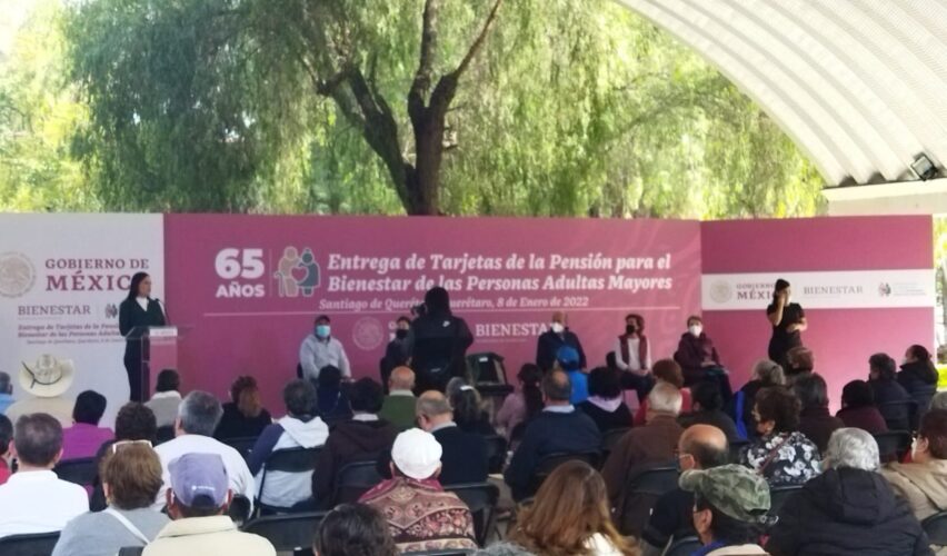 Querétaro., 8 de enero de 2022.- Más de tres mil 500 millones de pesos destinará la Secretaría de Bienestar a la pensión universal para las personas adultas mayores de Querétaro, luego de integrar a 46 mil nuevos derechohabientes al programa, con lo que se pretende llegar a 146 mil personas, informó la subsecretaria federal de la dependencia, Ariadna Montiel Reyes.