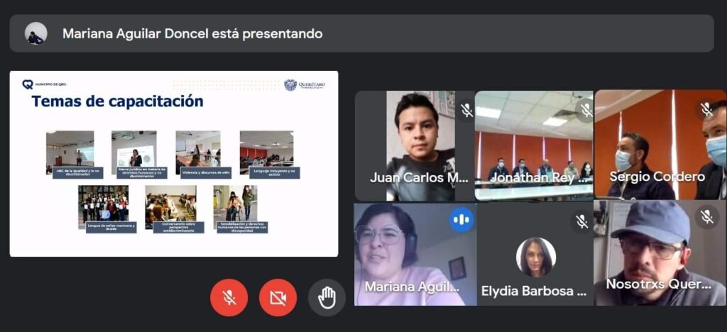 Querétaro, Qro., 30 de enero de 2022.- En la primera sesión ordinaria de 2022 de la Asamblea Consultiva del Instituto Municipal para Prevenir y Eliminar la Discriminación (Inmupred), juventudes de SOS Discriminación Internacional Querétaro celebraron la presentación de su nueva estructura organizacional y plan de trabajo, dirigidos al cumplimiento de los Objetivos de Desarrollo Sostenible de la Agenda 2030. En el encuentro estuvieron Arturo Torres Gutiérrez y Cesar Guerrero, secretario y subsecretario, respectivamente, de Desarrollo Humano y Social de la capital queretana.