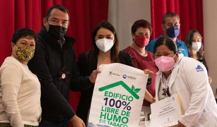 San Juan del Río, Qro., 1 de febrero de 2022.- La Secretaría de Salud de Querétaro y el Consejo Estatal Contra las Adicciones (Ceca) entregaron certificados de edificios libres de humo de tabaco pertenecientes a los municipios de Colón, Amealco, Pedro Escobedo, Tequisquiapan y San Juan del Río.