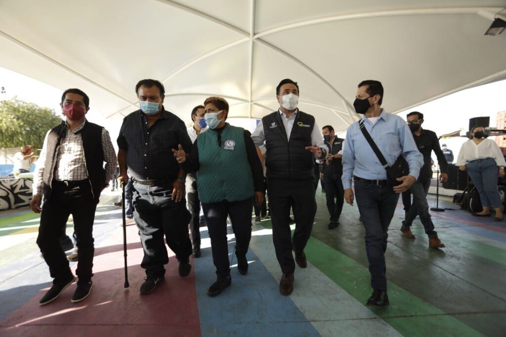 El presidente municipal de Querétaro, Luis Nava, acompañado del secretario de Desarrollo Social del Estado, Agustín Dorantes Lambarri, entregó a los comerciantes del Tianguis Nocturno Molineros, la estructura de lonaria y rehabilitación del espacio donde ejercen su labor; espacios que dijo, deben ser dignos para avanzar en la reactivación económica de todas las familias de la capital.