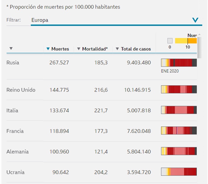 Tabla 1. Coronavirus datos en detalle (BBC News, 2021)