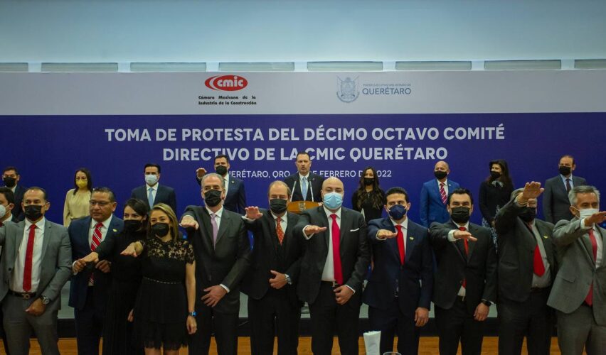Querétaro, Qro., 17 de febrero de 2022.- El gobernador de Querétaro, Mauricio Kuri González, tomó protesta al XVIII Comité Directivo de la Cámara Mexicana de la Industria de la Construcción (CMIC), delegación Querétaro, evento en el que reconoció a sus integrantes como firmes aliados del desarrollo de la entidad.