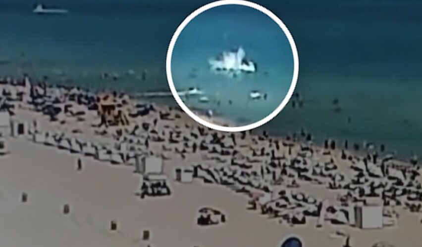 Un video que acompaña al tuit muestra un helicóptero cayendo al mar cerca de un área poblada de bañistas.