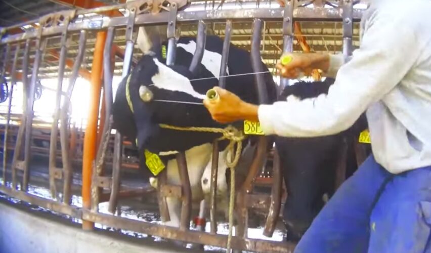 Asimismo, las vacas son pateadas violentamente y golpeadas con tubos; incluso les retuercen la cola, asevera la organización. A su vez, no es raro que las lastimen con la pulidora cuando les limaban las pezuñas, llegando a hacerlas sangrar.