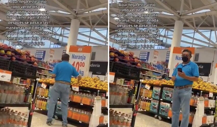“Aquí llega este viejo rabo verde disque [sic] queriendo agarrar una naranja, no agarra nada, después se pasa a las manzanas, para después disimuladamente tomarme una foto e irse, qué horror”, describió la chica en el video.