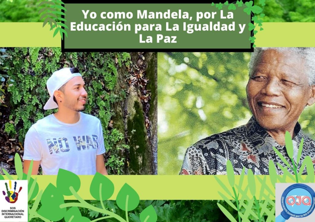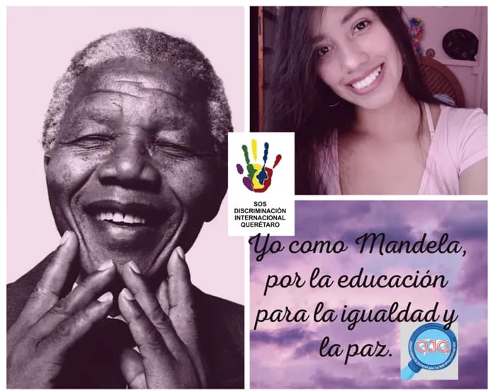 Querétaro, Qro., 21 de marzo de 2022.- “Durante la conmemoración del Día Internacional de la Eliminación de la Discriminación Racial (21 de marzo) recordamos el ejemplo del activista, expresidente sudafricano y Premio Nobel de la Paz Nelson Mandela, para demostrar que es posible erradicar el racismo y cualquier forma de discriminación para vivir en paz”, expresaron estudiantes universitarios y miembros de SOS Discriminación Internacional Querétaro y del Observatorio Juvenil por la No Discriminación (OJQ).