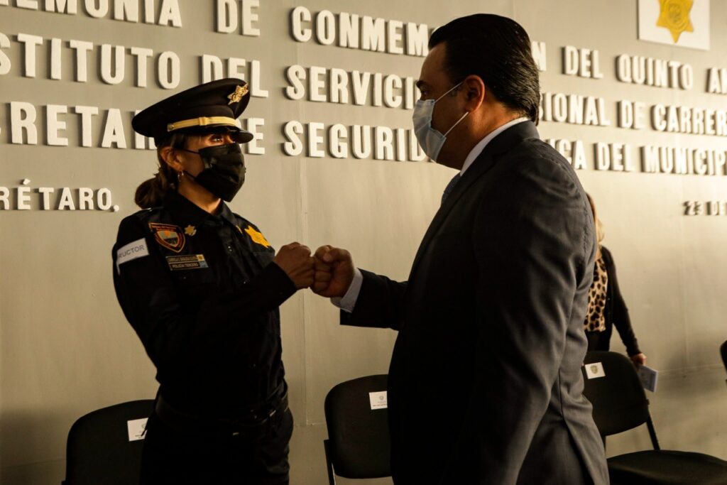 Querétaro, Qro., 23 de marzo de 2022.- El alcalde Luis Nava encabezó la conmemoración por el quinto aniversario del Instituto del Servicio Profesional de Carrera Policial de la Secretaría de Seguridad Pública Municipal de Querétaro. Hasta la fecha, 500 policías se han formado en la institución, que además actualiza conocimientos y habilidades de los elementos de la corporación.