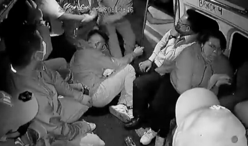 Los tres sujetos despojaron de sus pertenencias a los pasajeros. A pesar de que uno de ellos se resiste, al final los ladrones le arrebataron sus cosas tras golpearlo.