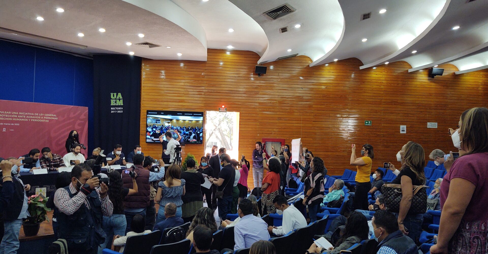 Cuernavaca.- Apenas iba a hacerse la presentación de las once personas que presidirían el quinto diálogo abierto por la nueva ley de protección cuando, desde abajo, una mujer defensora de los derechos humanos interrumpió para pedir el micrófono, entonces se arremolinó una docena más de asistentes y otros se pusieron de pie para corear “¡No … Sigue leyendo Diálogo por ley de protección en Morelos; se aplicaron periodistas, activistas y funcionarios – Rogelio Hernández López