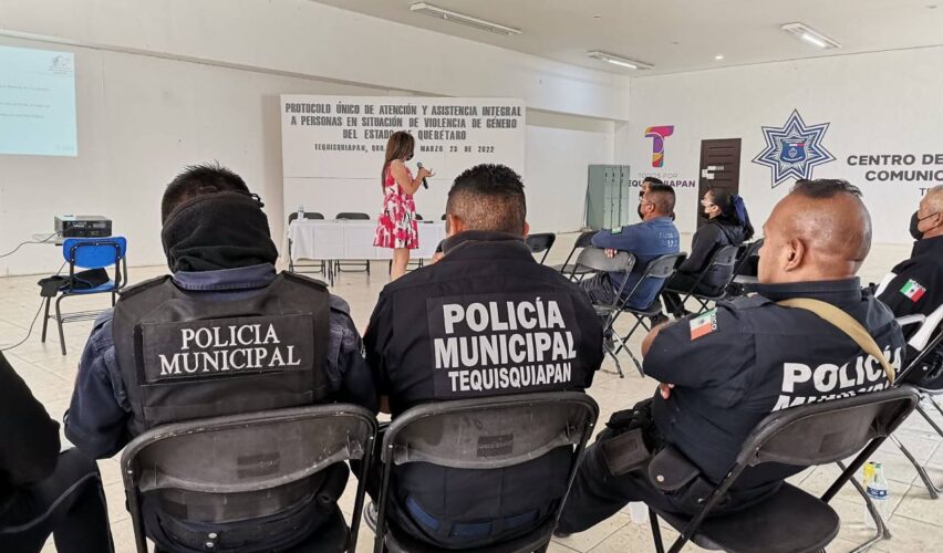 La semana pasada, en coordinación con el Instituto Municipal de la Mujer de Tequisquiapan, se capacitó durante dos días a oficiales de la Secretaría de Seguridad Pública y Tránsito de ese municipio. Sólo queda pendiente un tercer grupo para que la totalidad de policías de Tequisquiapan sean instruidos en el protocolo.