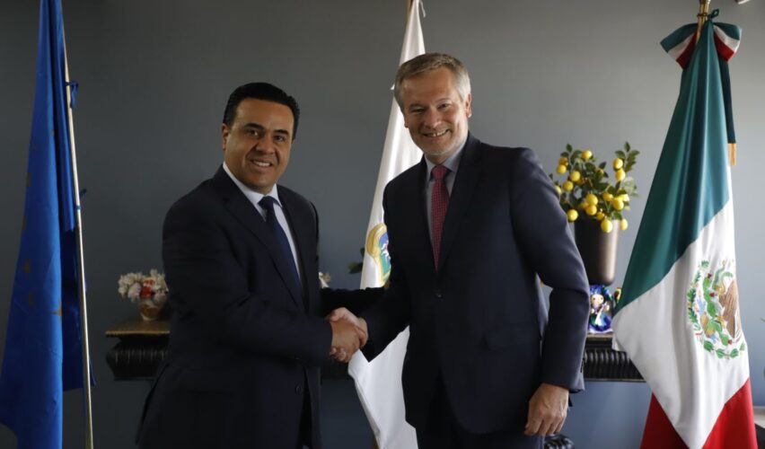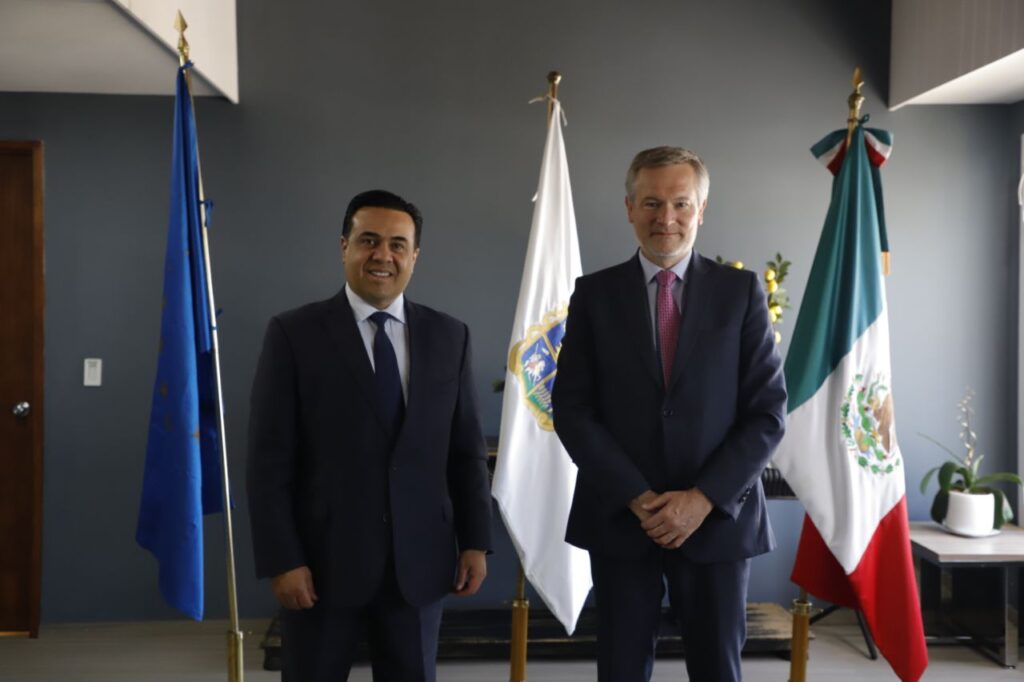 Querétaro, Qro., 3 de abril de 2022.- El presidente municipal de Querétaro, Luis Nava, recibió en el Centro Cívico al embajador jefe de la Delegación de la Unión Europea en México, Gautier Mignot.