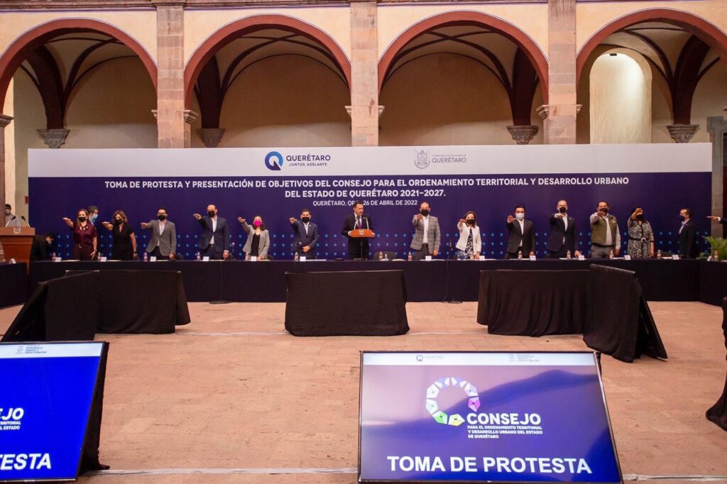 Querétaro, Qro., 26 de abril de 2022.- En la toma de protesta de los integrantes del Consejo para el Ordenamiento Territorial y Desarrollo Urbano del Estado de Querétaro 2021-2027, el gobernador Mauricio Kuri se pronunció a favor de las políticas públicas para mejorar la calidad de vida de los queretanos que tomen en cuenta el presente, pero con visión hacia el futuro.