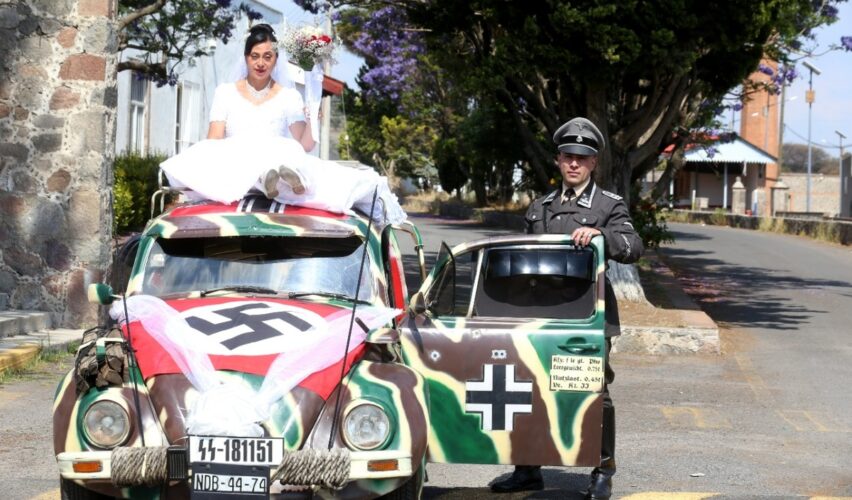 México, 4 de mayo de 2022.- Una pareja de Ecatepec de Morelos, Estado de México, se casó el 29 de abril en una parroquia de Tlaxcala; la celebración se volvió tendencia en internet porque los novios utilizaron vestuarios, un vehículo y otros elementos con motivos del Partido Nacional Socialista Alemán (Nazi).