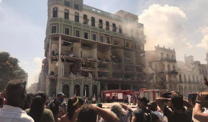La Habana, Cuba, 6 de mayo de 2022.- El Hotel Saratoga, ubicado en pleno centro de La Habana, Cuba, registró una fuerte explosión que dejó al menos ocho muertos y una treintena de heridos, informaron fuentes oficiales; se busca a personas atrapadas entre los escombros.