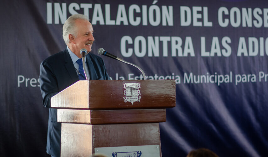 El Marqués, Qro., 9 de mayo de 2022.- El presidente municipal de El Marqués, Enrique Vega Carriles, presentó la primera estrategia integral a nivel municipal para combatir las adicciones y las conductas de riesgo, que otorgará atención a toda la población a través del Instituto Municipal para Prevenir Adicciones y Conductas de Riesgo (Centro Vive). Esto fue en el marco de la sesión solemne del Consejo Municipal contra las Adicciones, donde sus integrantes rindieron protesta.