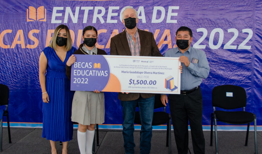 “Becas educativas para que ustedes, niños y jóvenes de 72 localidades del municipio, continúen o concluyan sus estudios, y que la falta de recursos no sea motivo para interrumpirlos; para que crezcan sus capacidades y potencien sus talentos por medio de la educación; para que se genere corresponsabilidad entre padres de familia, maestros y autoridades; para que juntos impulsemos el conocimiento como su mejor aliado para lograr oportunidades, conseguir empleos y lograr sus proyectos de vida; para que ustedes, las y los estudiantes marquesinos, diseñen y construyan un mejor futuro”, afirmó el edil Enrique Vega.