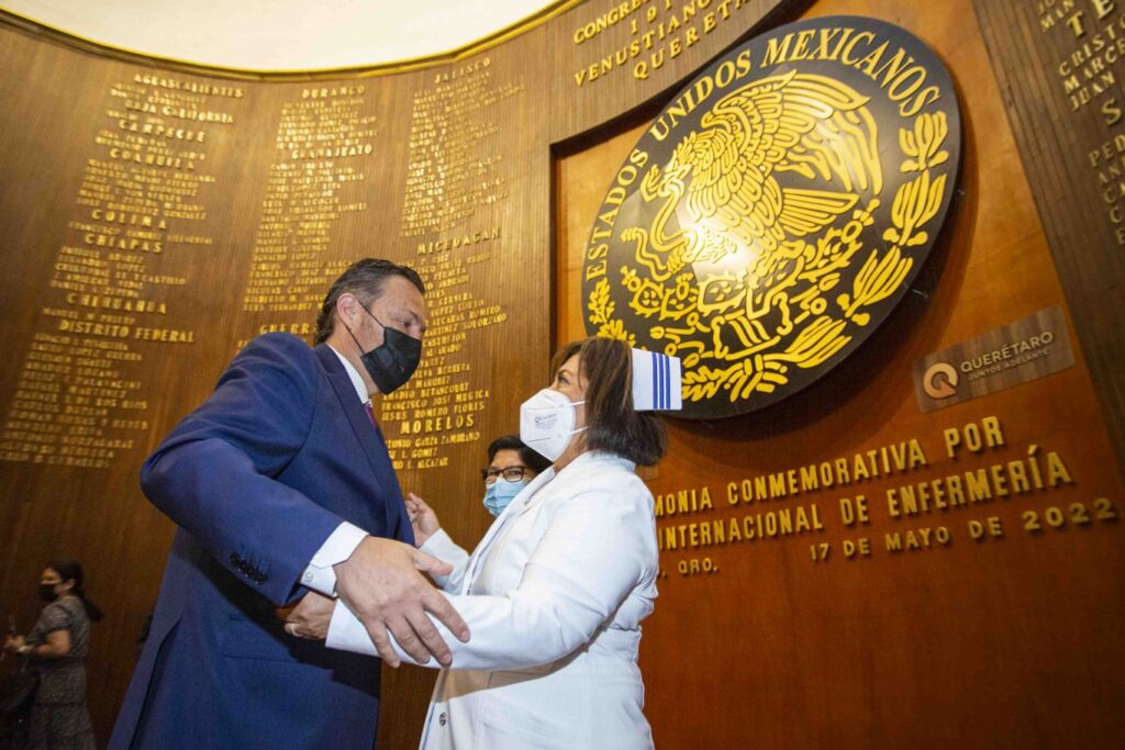 Querétaro, Qro., 17 de mayo de 2022.- En la conmemoración queretana por el Día Internacional de la Enfermería, que se celebró el 12 de mayo, el gobernador Mauricio Kuri destacó la gran labor que ha realizado el personal de salud del estado en la pandemia de Covid-19.