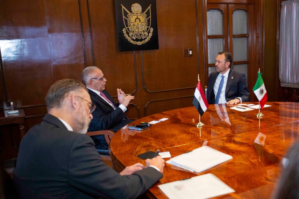 Querétaro, Qro., 20 de mayo de 2022.- El gobernador Mauricio Kuri se reunió con el embajador de la República Árabe de Egipto en México, Khaled Shamaa, con quien acordó establecer vínculos para fomentar la participación y la cooperación entre ambos territorios, de manera que se alcancen beneficios mutuos en temas de economía, cultura, educación, energía y medio ambiente.