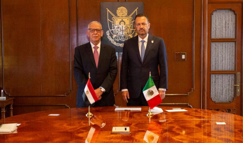 Querétaro, Qro., 20 de mayo de 2022.- El gobernador Mauricio Kuri se reunió con el embajador de la República Árabe de Egipto en México, Khaled Shamaa, con quien acordó establecer vínculos para fomentar la participación y la cooperación entre ambos territorios, de manera que se alcancen beneficios mutuos en temas de economía, cultura, educación, energía y medio ambiente.