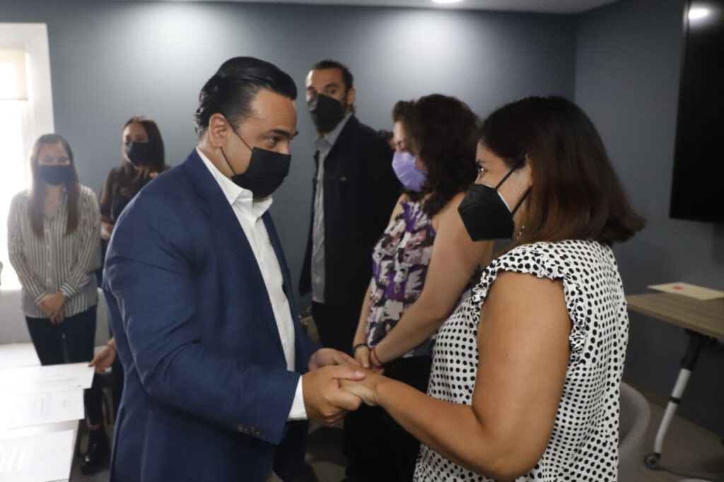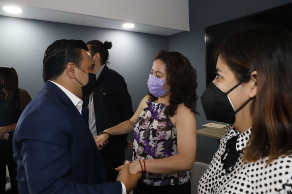 Querétaro, Qro., 20 de mayo de 2022.- En el Día Nacional de la Psicóloga y el Psicólogo, el alcalde de Querétaro, Luis Nava, y su esposa, la presidenta del DIF local Arahí Domínguez, se reunieron con personal de la Procuraduría de Protección de Niñas, Niños y Adolescentes del DIF municipal, así como con quienes laboran en la Línea de Primeros Auxilios Psicológicos. Reconocieron la gran labor en favor de la sociedad de estos especialistas en salud mental, sobre todo durante la pandemia.