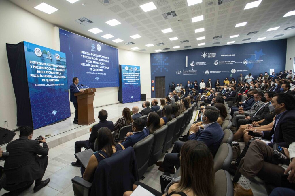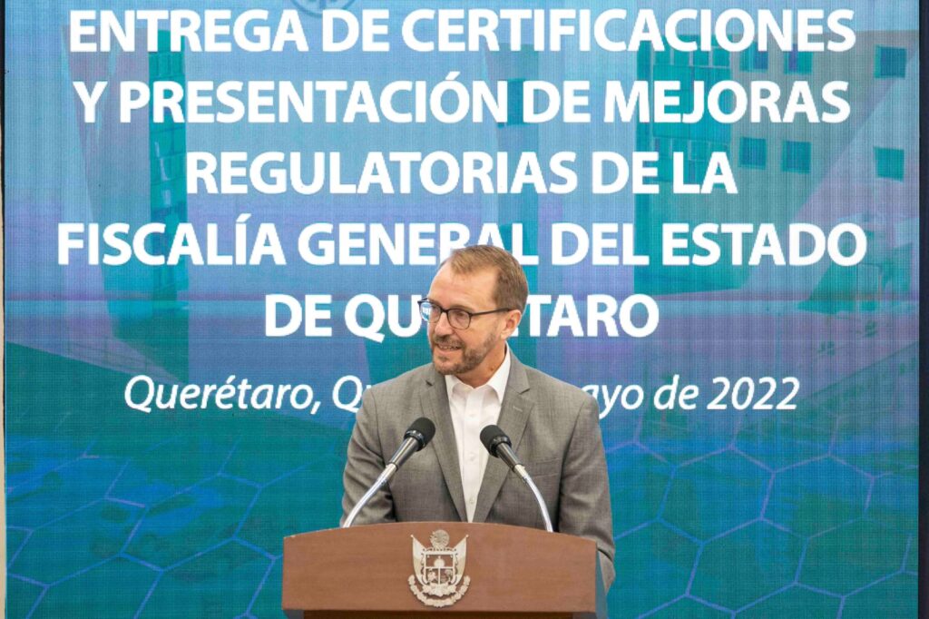 Querétaro, Qro., 23 de mayo de 2022.- Seguiremos trabajando para llevar a Querétaro al siguiente nivel a partir del Estado de derecho e instituciones, afirmó el gobernador Mauricio Kuri durante la entrega de reconocimientos del proyecto de Certificación para la Justicia en México (Cejume) y la presentación de mejoras regulatorias a este organismo autónomo, entre las que destaca la digitalización de la emisión de cartas de no antecedentes penales.