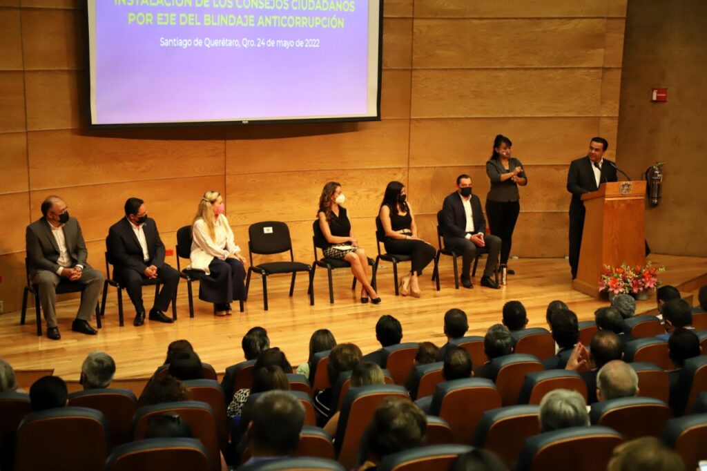 Querétaro, Qro., 24 de mayo de 2022.- El alcalde de Querétaro, Luis Nava, encabezó la instalación de los Consejos Ciudadanos por Eje, derivados del Plan de Desarrollo Municipal 2021-2024, los cuales son parte de la estrategia Blindaje Anticorrupción que involucra a representantes de diversas instituciones para dar seguimiento a los trabajos en la capital.