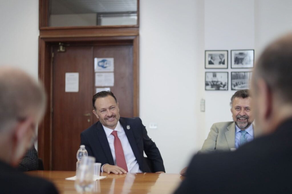 Querétaro,Qro., 3 de junio 2022.- En continuidad a las actividades diplomáticas que realiza en Roma, el gobernador, Mauricio Kuri González, acompañado por el Embajador de México en Italia, Carlos García de Alba, celebró una reunión con el Subdirector Central para América Latina y el Caribe del Ministerio de Relaciones Exteriores y Cooperación de Italia, Michele Pala, en aras de intercambiar perspectivas para encontrar oportunidades de cooperación bilateral.