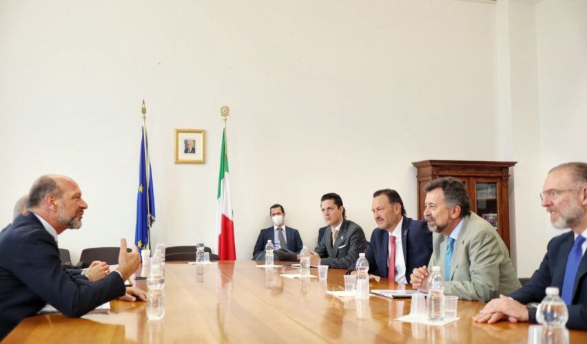 Querétaro,Qro., 3 de junio 2022.- En continuidad a las actividades diplomáticas que realiza en Roma, el gobernador, Mauricio Kuri González, acompañado por el Embajador de México en Italia, Carlos García de Alba, celebró una reunión con el Subdirector Central para América Latina y el Caribe del Ministerio de Relaciones Exteriores y Cooperación de Italia, Michele Pala, en aras de intercambiar perspectivas para encontrar oportunidades de cooperación bilateral.