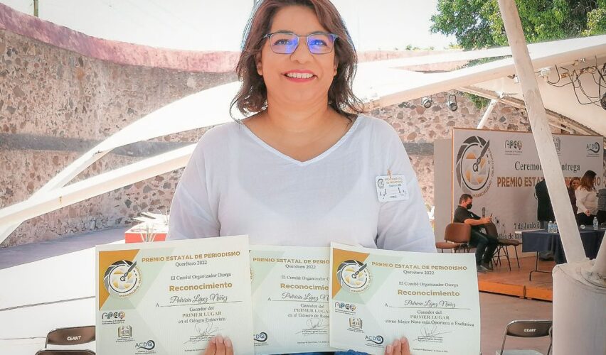 REDACCIÓN/LALUPA.MX FOTOS: ENRIQUE CONTLA/LALUPA.MX ¡Histórico!: Patricia López Núñez, reportera de lalupa.mx, obtuvo presea y diplomas en tres géneros periodísticos: Entrevista, Reportaje y Nota más oportuna o Exclusiva durante la entrega del Premio Estatal de Periodismo Querétaro 2022, galardón auspiciado por la Asociación de Periodistas del Estado de Querétaro (APEQ), la Asociación de Cronistas Deportivos de Querétaro (ACDQ) y … Sigue leyendo Obtiene lalupa.mx 4 reconocimientos durante la entrega del Premio Estatal de Periodismo Querétaro 2022