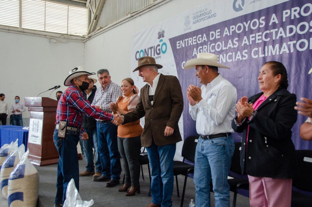 “Venimos a refrendar nuestro compromiso con ustedes de impulsar un frente común a favor del campo marquesino. A respaldar su labor como agricultores de temporal, que están a merced del clima: de las sequías, de las heladas, de las granizadas e inundaciones”, afirmó el alcalde.