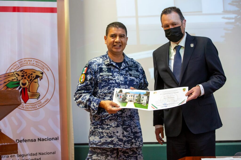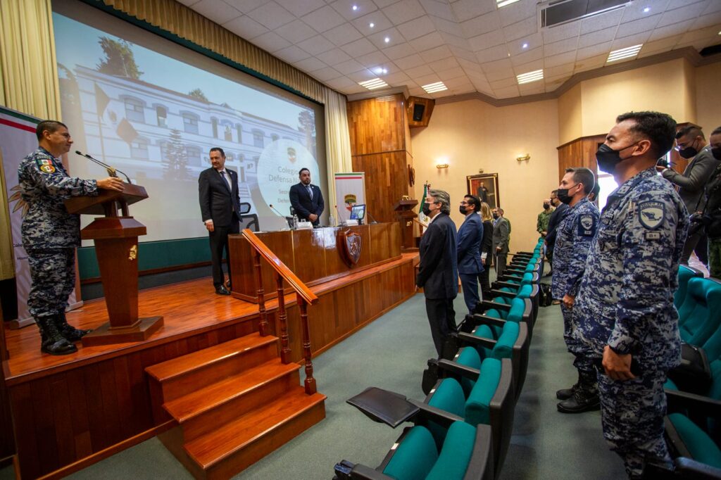 En presencia del jefe de la sección académica del Colegio de la Defensa Nacional, general José Guillermo Lira Hernández, agregó que estas líneas involucran mayor profesionalización, gestión de las corporaciones con enfoque preventivo, uso de tecnologías e infraestructura, participación con todos los niveles y poderes; así como la colaboración permanente de las fuerzas armadas.