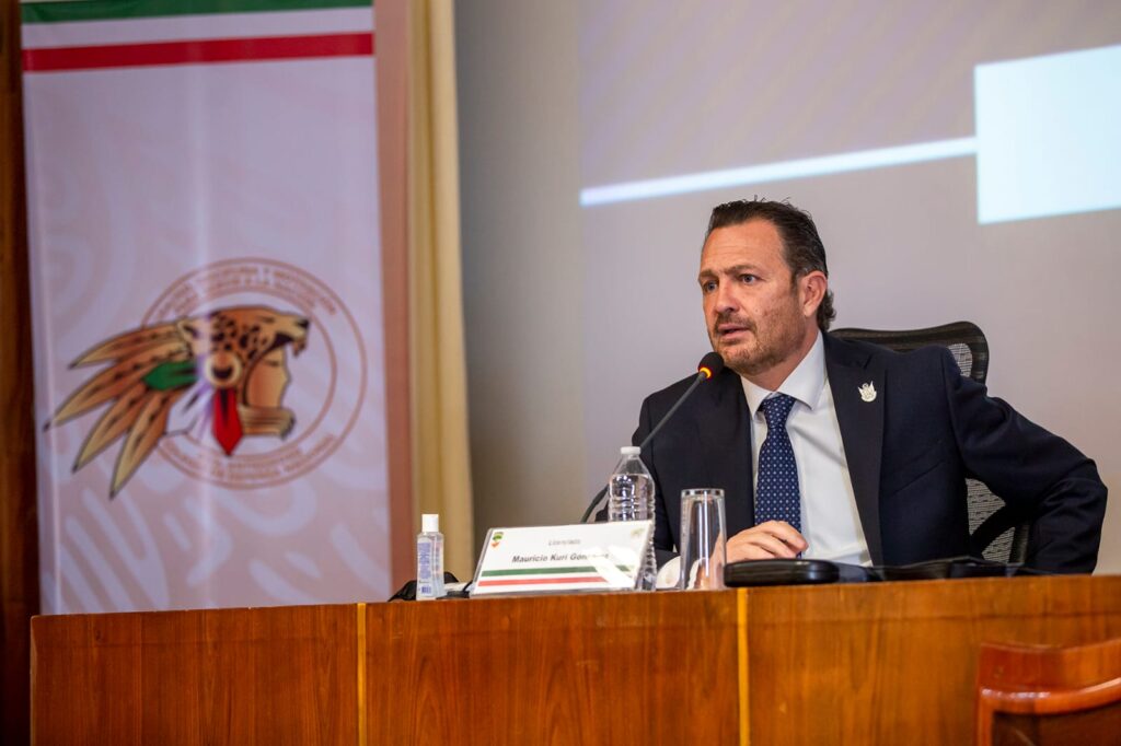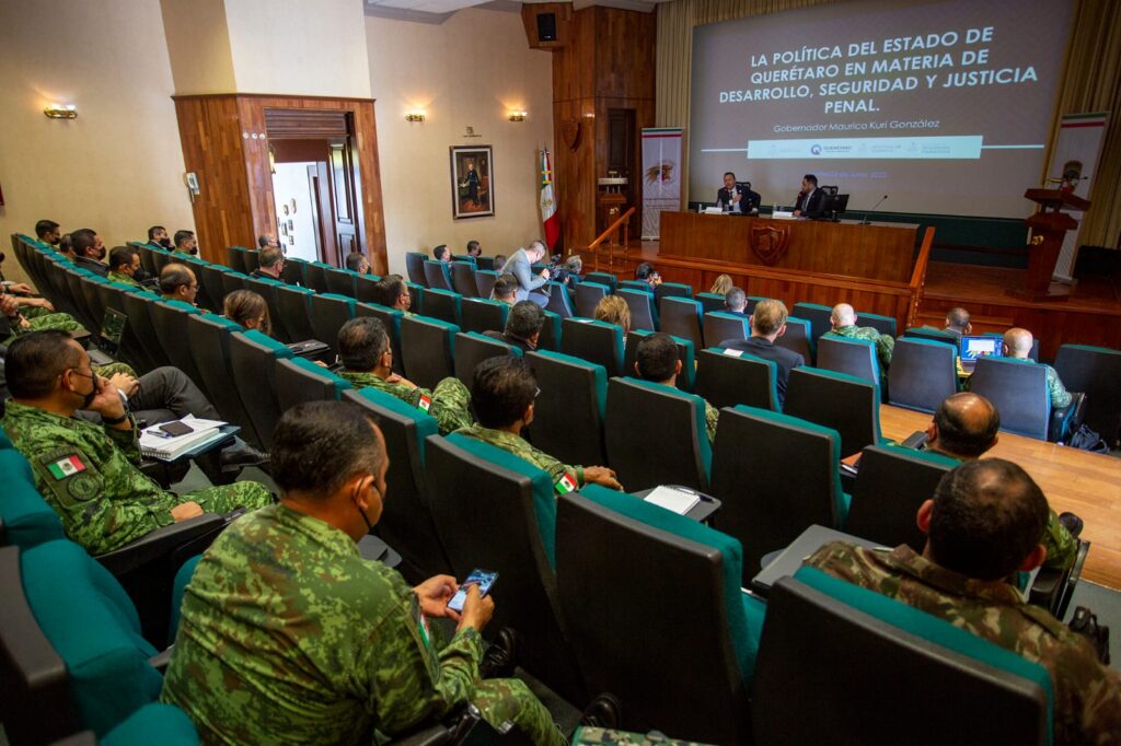 Ciudad de México, 28 de junio de 2022.- La prevalencia de un Estado de derecho sólido es la mejor garantía para el crecimiento económico y el desarrollo social equitativo, afirmó el gobernador de Querétaro, Mauricio Kuri, al presentar acciones de la agenda de política pública estatal de seguridad y justicia penal a estudiantes de la maestría en seguridad nacional del Colegio de la Defensa Nacional.