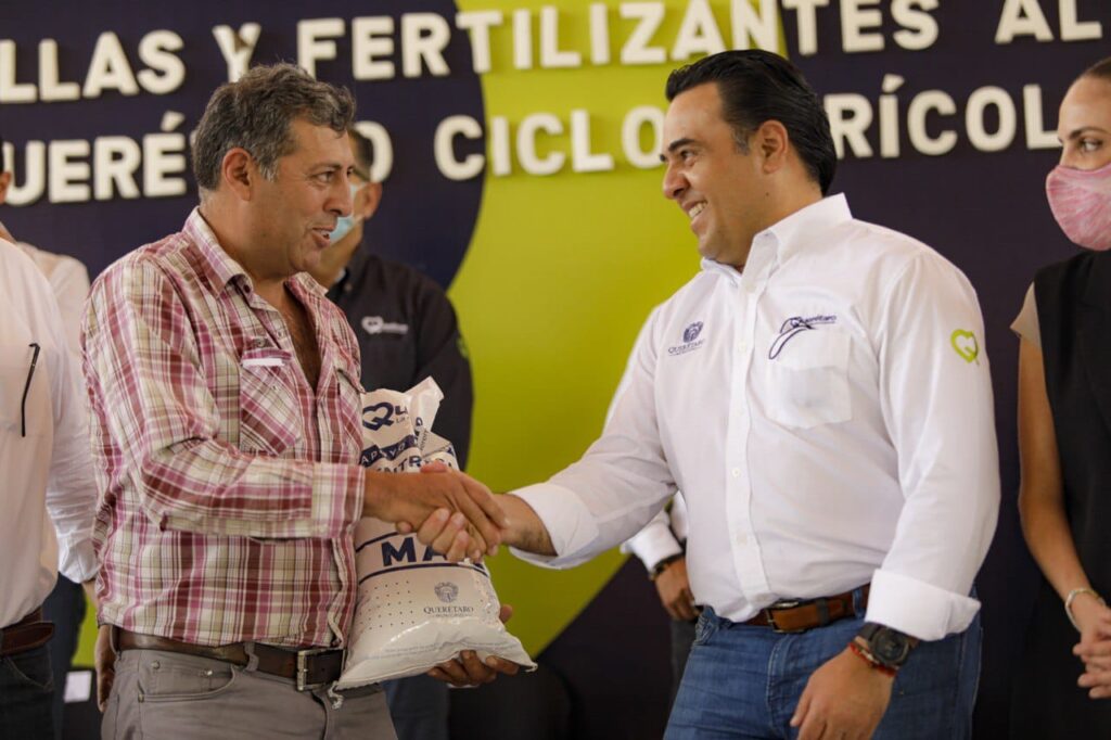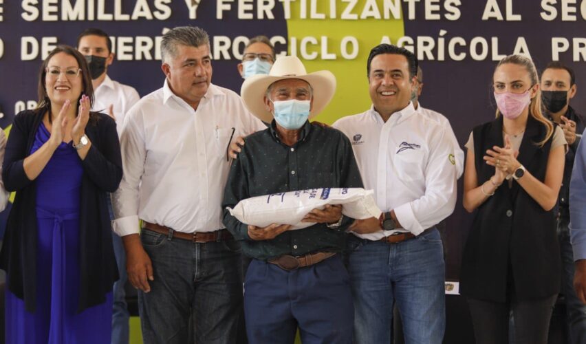 Querétaro, Qro., 29 de junio de 2022.- El presidente municipal de Querétaro, Luis Nava, encabezó la entrega de 15 toneladas de semillas y 98 toneladas de fertilizantes para apoyar el ciclo agrícola primavera-verano en la capital estatal. Con esta acción, Querétaro se convierte en el primer municipio de la entidad en establecer un programa de rescate de maíces criollos bajo un enfoque sustentable.