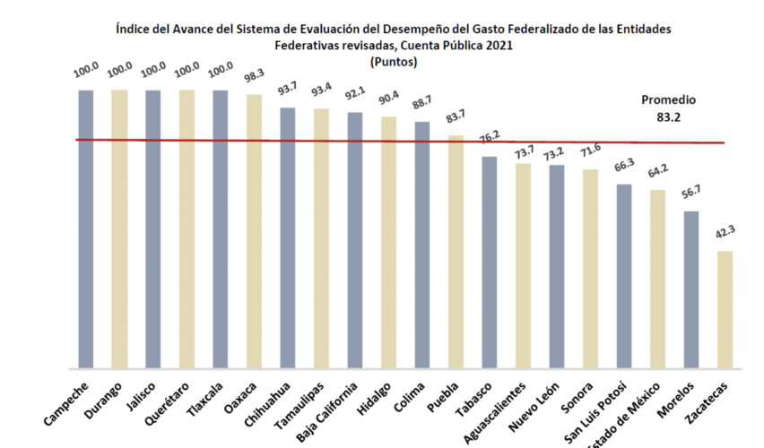 Querétaro, Qro., 7 de julio de 2022.- El estado de Querétaro consiguió la primera posición en el Índice del avance del Sistema de Evaluación del Desempeño del Gasto Federalizado de las Entidades Federativas, esto de acuerdo a la Auditoría Superior de la Federación (ASF), en su más reciente medición; con ello la entidad avanzó una posición en el uso adecuado de los recursos económicos dirigidos a la implementación de obras y acciones sociales a favor de las y los queretanos.
