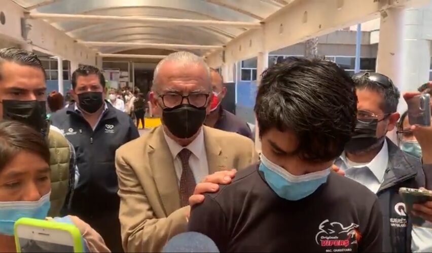 Querétaro, Qro., 11 de junio de 2022.- Juan, el joven quemado por sus compañeros en la telesecundaria Josefa Vergara, en El Salitre, recibió el alta del Hospital del Niño y la Mujer, en el que pasó 34 días; le hicieron un injerto autónomo el pasado 30 de junio y diversos tratamientos. Durante tres meses, la familia recibirá un apoyo para la renta de una casa por parte del gobierno estatal y luego regresará a su vivienda.