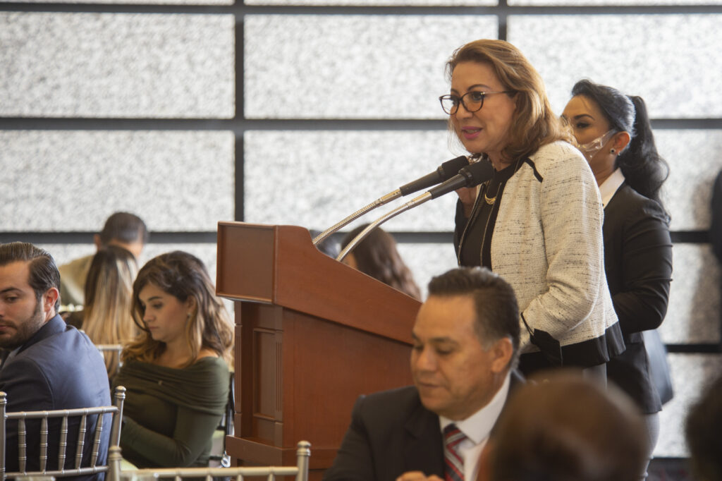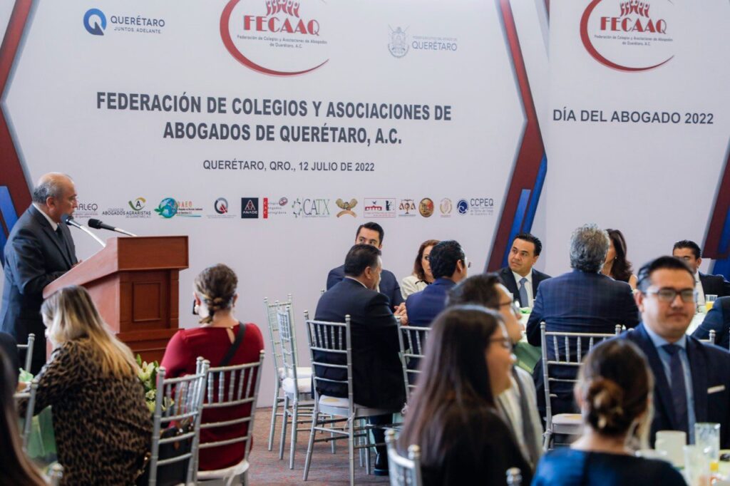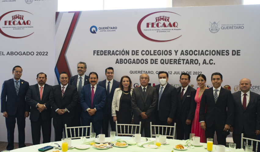 Querétaro, Qro., 12 de julio de 2022.- La secretaria de Gobierno Guadalupe Murguía encabezó, en representación del gobernador Mauricio Kuri, la ceremonia conmemorativa por el Día del Abogado organizada por la Federación de Colegios y Asociaciones de Abogados de Querétaro (FECAAQ). En el evento expresó que para preservar y consolidar el Estado de derecho se debe partir del cumplimiento de la ley.