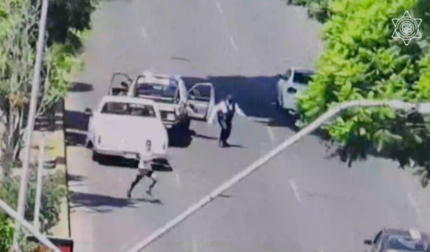Mediante cámaras de vigilancia, fue ubicada en inmediaciones de la avenida Zaragoza una unidad que coincidía con la reportada. El sujeto que iba a bordo intentó huir a pie, pero fue alcanzado por las autoridades. Entre sus pertenencias estaban un arma de fabricación casera y un cartucho útil.