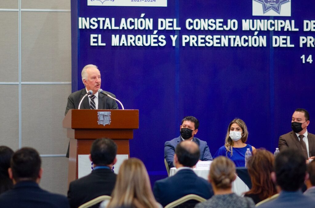 “En cumplimiento al marco normativo, presentamos el Programa Municipal de Seguridad de El Marqués, comprometiendo así el desempeño de mi administración. Resultado del ejercicio plural, democrático e incluyente que sustenta el Plan Municipal de Desarrollo 2021-2024, este programa articula acciones permanentes para cumplir con nuestra primera responsabilidad como gobierno”, indicó el alcalde.
