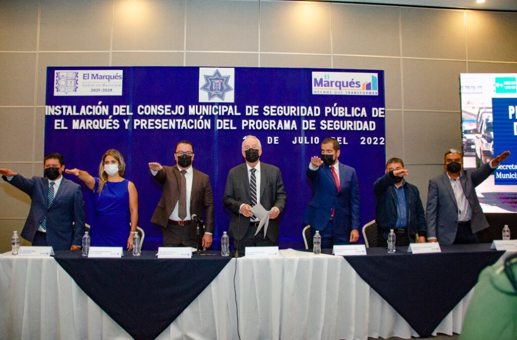 El Marqués, Qro., 14 de julio de 2022.- Durante la instalación del Consejo Municipal de Seguridad Pública de El Marqués, fue presentado el Programa de Seguridad Pública local, el cual cumple con la Ley de Seguridad para el Estado de Querétaro y el propio Reglamento Interior de la Secretaría de Seguridad Pública y Tránsito del municipio.