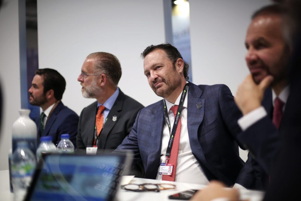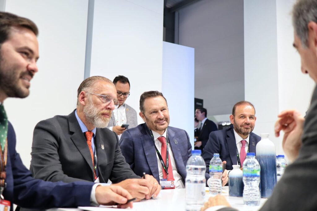 Farnborough, Reino Unido, 20 de julio de 2022.- En la Farnborough International Airshow, el gobernador Mauricio Kuri se reunió con ejecutivos de la multinacional aeronáutica Aernnova, quienes expusieron sus planes de actualizar las operaciones de la compañía en Querétaro.