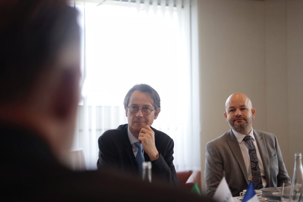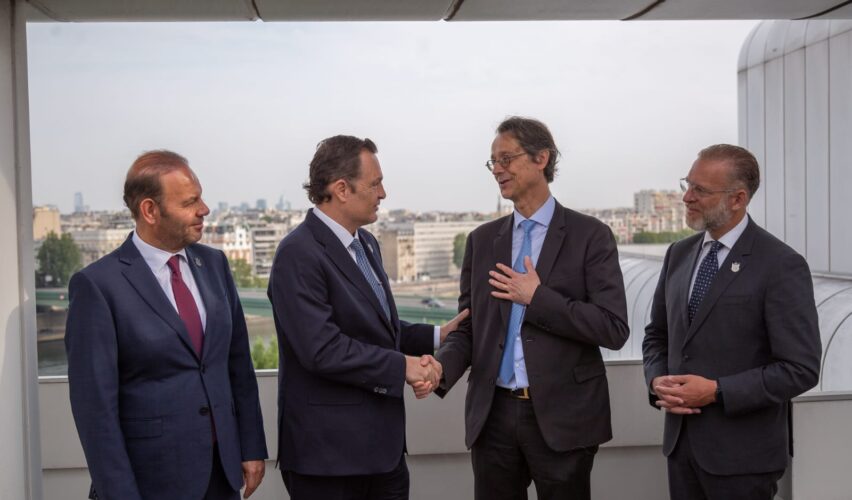 París, Francia, 22 de julio de 2022.- El gobernador Mauricio Kuri se reunió con el CEO de Safran, Olivier Andriés, en París, Francia. En el encuentro se consolidó el proyecto de expansión de la empresa en Querétaro, el cual prevé la generación de 800 nuevos empleos de alta especialización, que se sumarían a los 2 mil 500 trabajadores que ya tiene la compañía en la entidad.