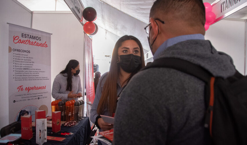 El Marqués, Qro., 26 de julio de 2022.- El gobierno municipal de El Marqués —a través de la Secretaría de Desarrollo Económico y Turismo, y en conjunto con la Secretaría del Trabajo— llevaron a cabo la “Feria del Empleo El Marqués 2022” en la plaza San Pedro de La Cañada. En ésta se ofertaron un total de mil 739 ofertas laborales. Asimismo, se presentó el programa para el desempleo, para que los buscadores de trabajo obtengan un apoyo por parte de la dependencia estatal.