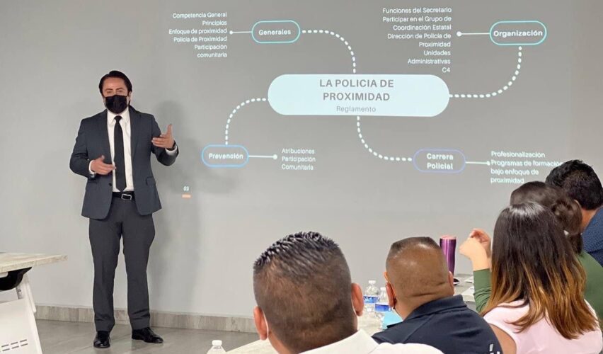 Querétaro, Qro., 12 de agosto de 2022.- La Secretaría de Seguridad Ciudadana, a través de la Dirección Jurídica, trabaja en coordinación con las instancias de seguridad y de los 18 Municipios de Querétaro para incorporar el Modelo de Policía de Proximidad.