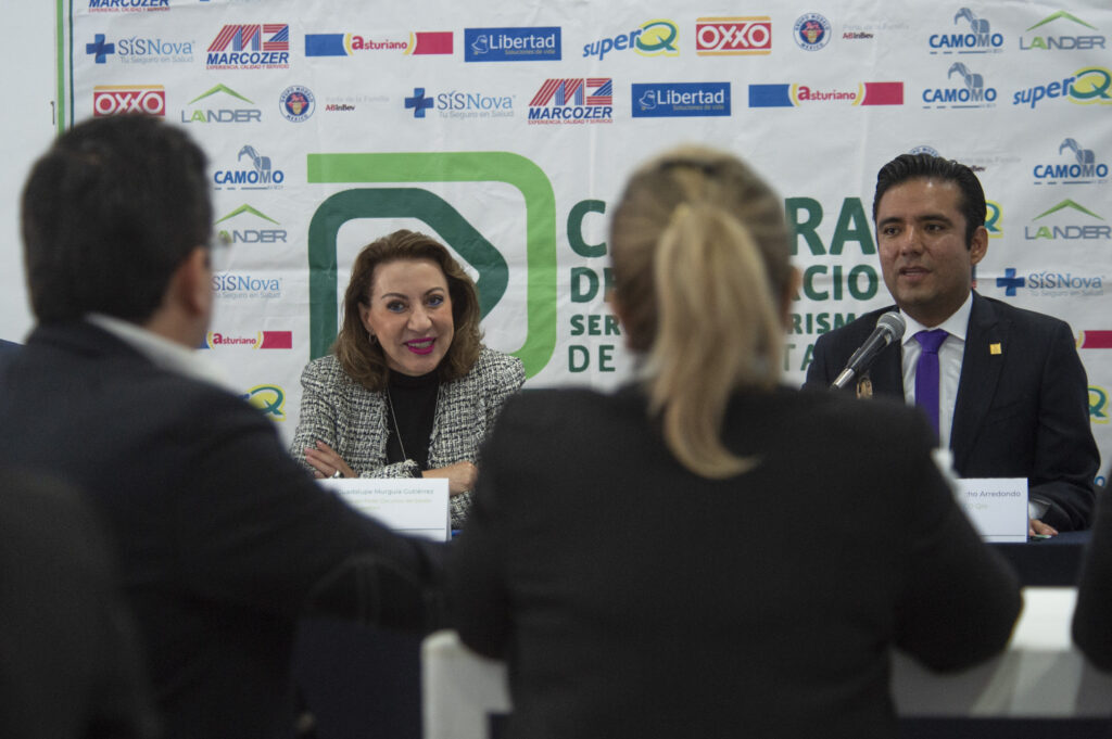 Querétaro, Qro., 18 de agosto de 2022.- La secretaria de Gobierno, Guadalupe Murguía Gutiérrez, sostuvo un encuentro con los integrantes de la Cámara Nacional de Comercio, Servicios y Turismo de Querétaro (Canaco), con quienes compartió que el fortalecimiento y el crecimiento económico, deben ir de la mano de la gobernanza; aseveró que cuando se habla de seguridad, no sólo se refiere a la seguridad en la persona, la familia y el patrimonio, sino también a la jurídica, en las inversiones y en la protección de datos personales.